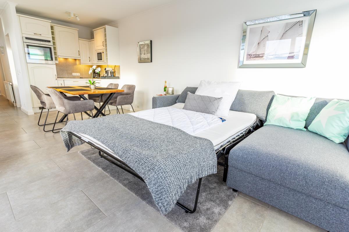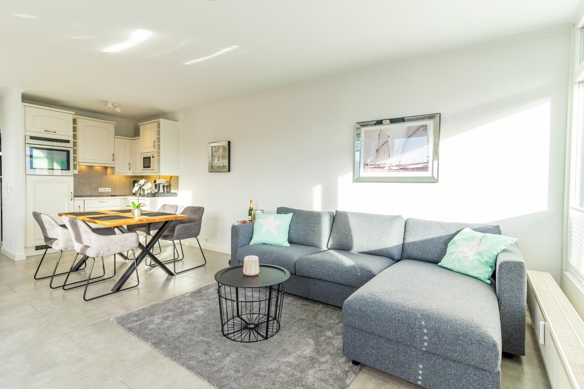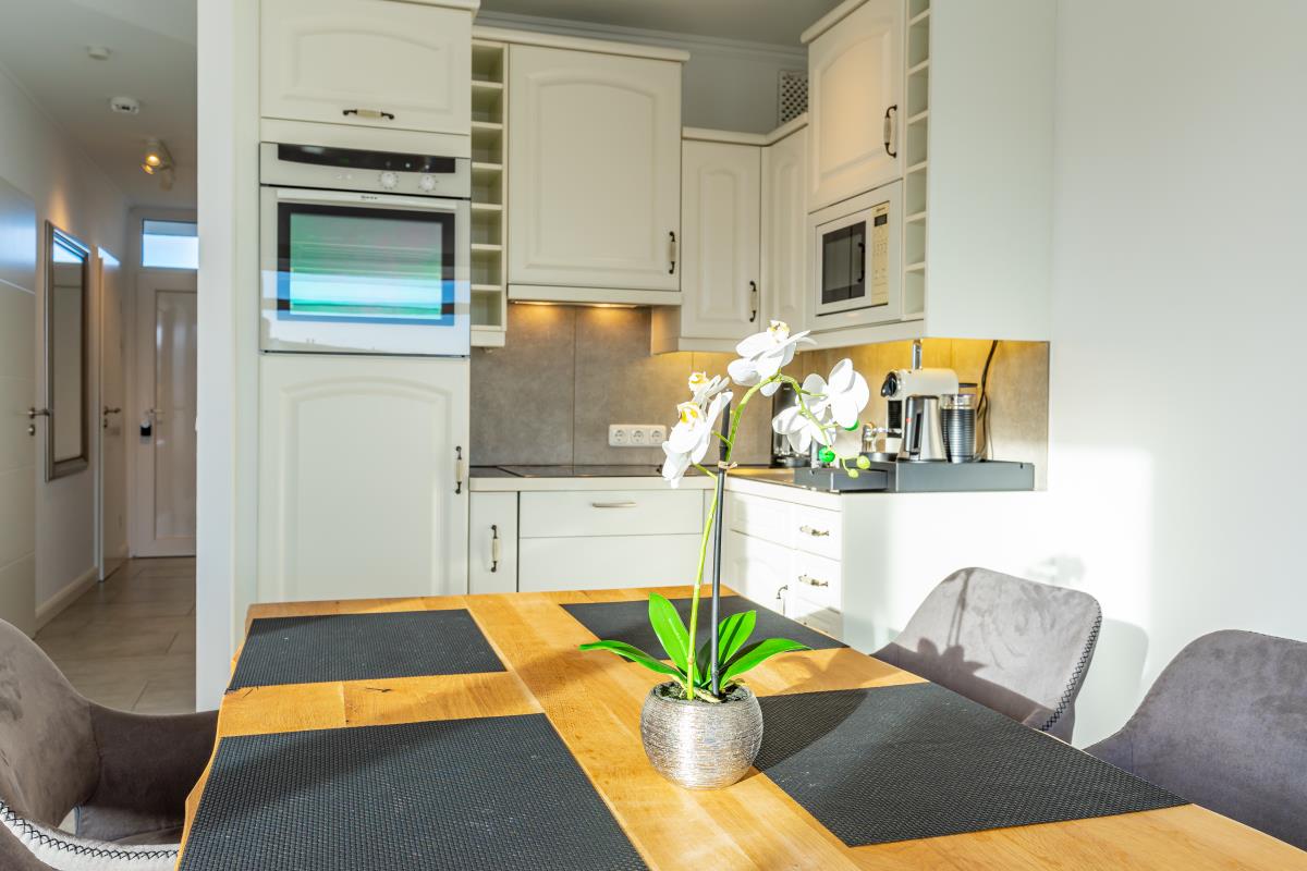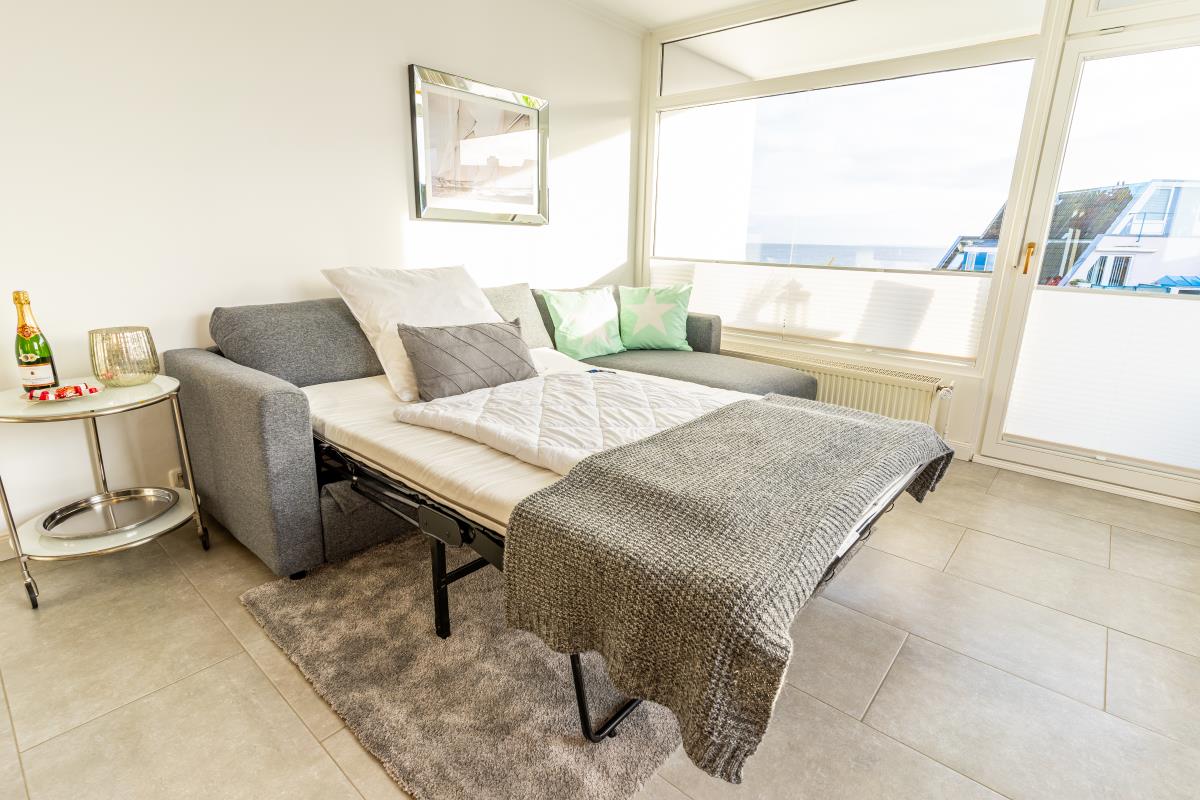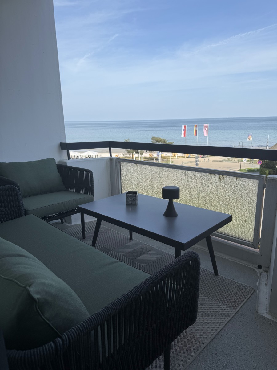 Genießen Sie den unvergesslichen Ostseeblick von der schönen Dachterrasse und dem Seeblickbalkon. Einfach ankommen und sich wohlfühlen. ca. 66qm , W-LAN und Klimaanlage vorhanden.Das Luxus Appartement befindet sich im 4. Geschoss /Lift vorhanden. Hier bleiben keine Urlaubswünsche offen! Wohnraum mit offener Einbauküche (Ceranfeld, Geschirrspüler, Mikrowelle, Kühlschrank, Nespresso-Maschine) und Essbereich, Fliesenboden, Sofa mit Schlaffunktion (Schlaffunktion für 2 Personen), Couchtisch, großer Flachbild TV mit HD Sender,Sky Reciver und Alexa (Radio hören, etc.). Zusätzlich gibt es einen separaten, aber offen gestallteten Schlafraum mit Fliesenboden, Kleiderschrank, Boxspring Bett 1,80m x 2,00m , Flachbildfernseher , Fenster vorhanden. Neues modernes Duschbad mit Duschabtrennung und Fenster, neues separates WC mit Fenster. Die Wohnung verfügt über W-Lan-Anschluss (bei Störung kein Ersatzanspruch). Auf der 40 qm großen Dachterrasse befindet sich eine Sauna zum entspannen nach einem langen Standspaziergang. (Sauna gegen Gebühr 20 Minuten 1 EUR )